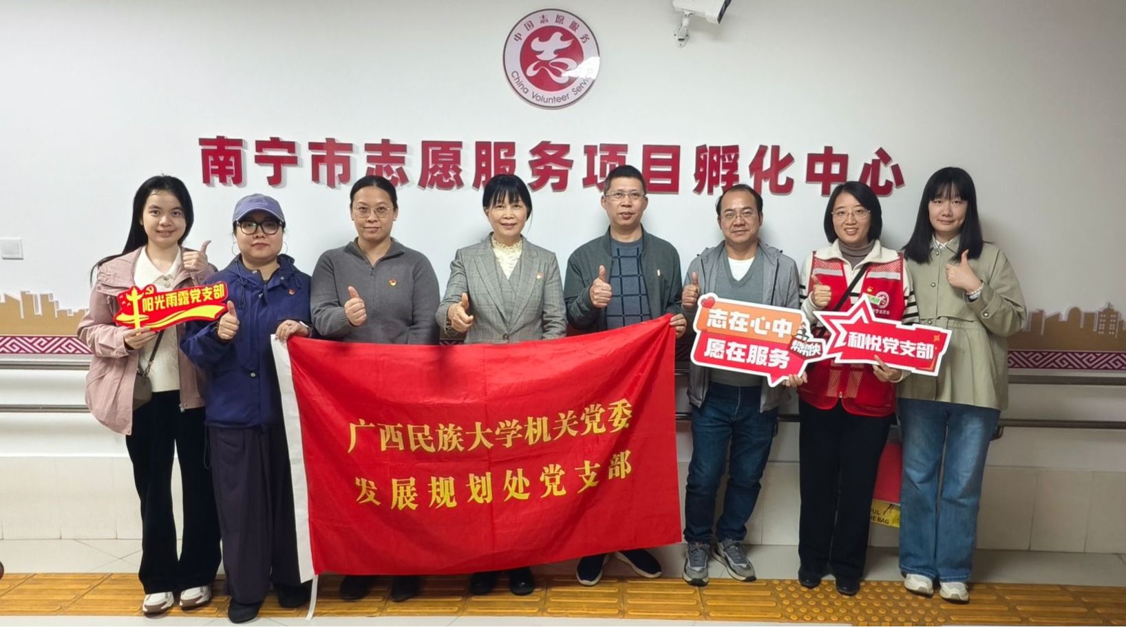 2026年1月16日,广西民族大学发展规划处党支部在党支部书记陈媛同志的带领下,前往南宁市志愿服务项目孵化中心开展主题党日活动。
